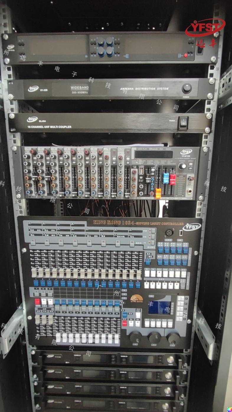此次音頻燈光設備,包(bāo)括有:200W LED 聚光燈(YF-143)、18x15W五合一 帕燈(YF-077)、專業音箱(LA-206)、功率放大器(YF-CA400)、真分集U段會議係統(YF-614D)、電(diàn)源時序器(YF-P8A)、音頻處理器(YF-DX48)等設備。